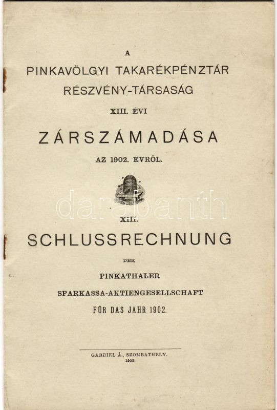 1903 A Pinkavölgyi Takarékpénztár Rt. zárszámadása magyar és német nye... https://www.darabanth.com/en/2-Major-auction/2.1/Art-and-collectibles/~539/1903-A-Pinkavolgyi-Takarekpenztar-Rt-zarszamadasa-magyar-es-nemet-nyelven-Gabriel-A-ny~II41424