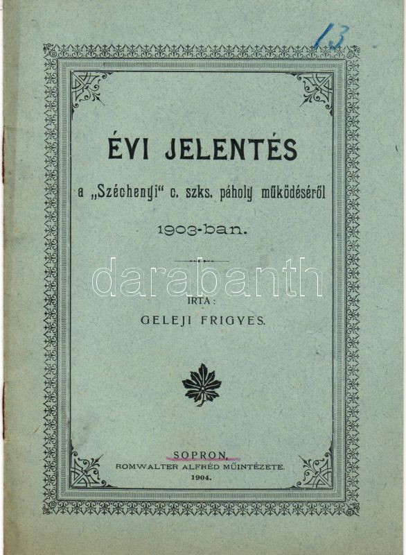 1904 Évi jelentés a Széchényi szabadkőműves páholy működéséről 1903; S... https://www.darabanth.com/en/2-Major-auction/2.1/Art-and-collectibles/~539/1904-Evi-jelentes-a-Szechenyi-szabadkomuves-paholy-mukodeserol-1903-Sopron-Romwalter-A~II38531