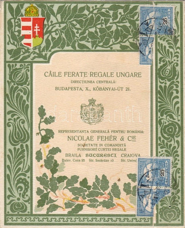1910 MÁV romániai képviselete színes litho reklámnyomtatvány / Ungaris...