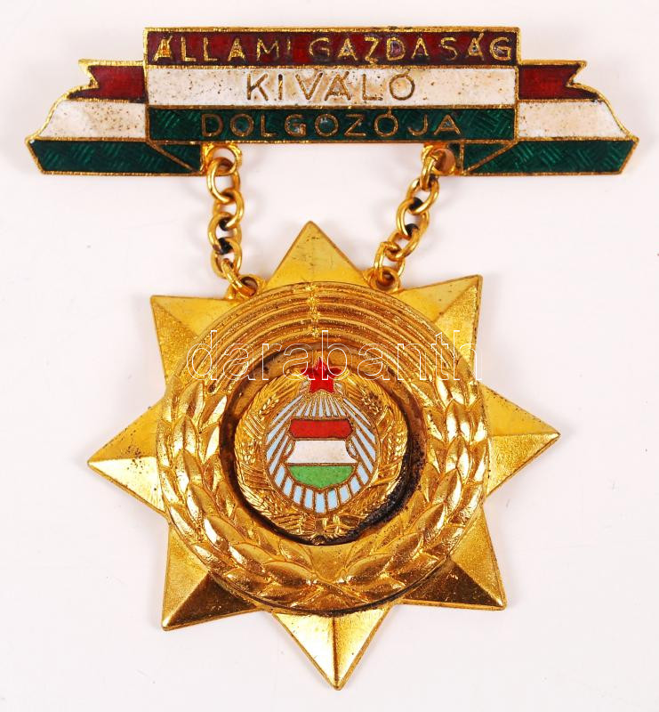 https://www.darabanth.com/en/200-Online-auction/200.0/Numismatics/Faleristics-medals-orders-badges~400015/7E1960-Allami-Gazdasag-Kivalo-Dolgozoja-zomancozott-kituntetes-T1-disztokban~II787937