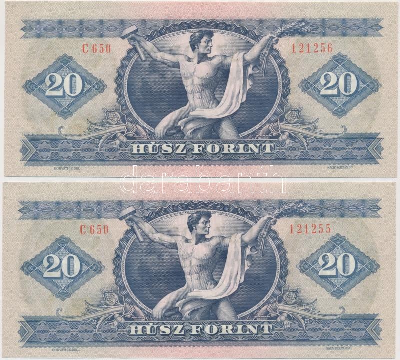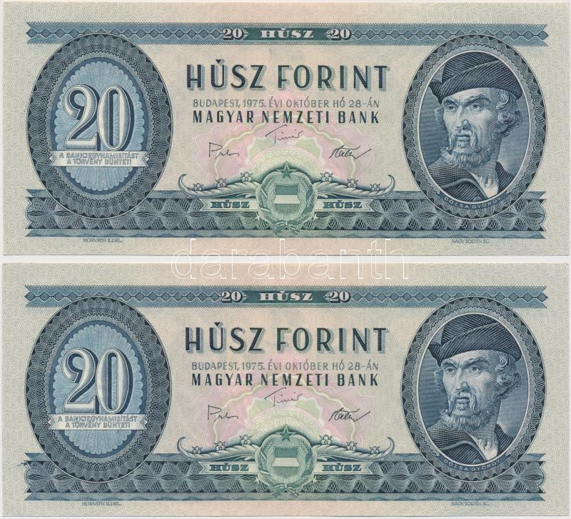1975. 20Ft (2x) egymást követő sorszámmal T:I