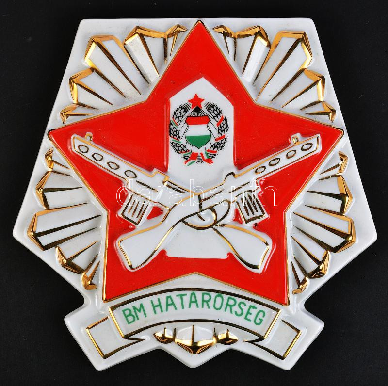 ~1970. "BM Határőrség" Hollóházi porcelán plakett adományozói dísztokb...