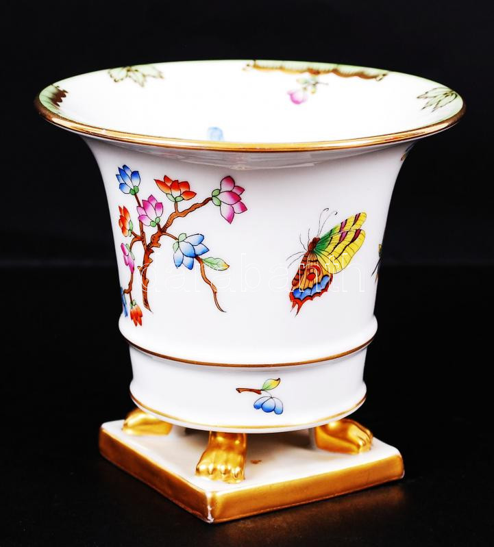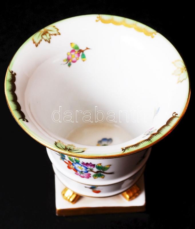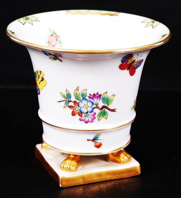 Herendi Viktória mintás karmos váza, kézzel festett, jelzett (koronás), hibátlan, m:10 cm d:10,5 cm