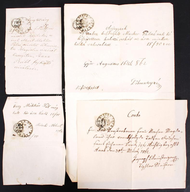1862 Győr, Számla, árjegyzék, nyugta magyar és német nyelven illetékbélyegekkel (4db).