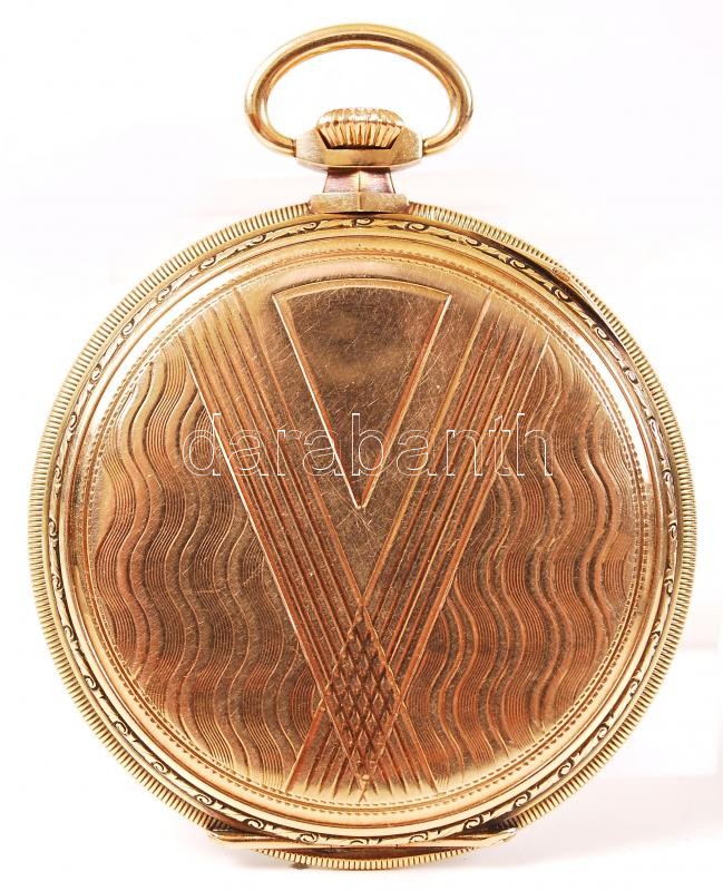 Description: IWC Schaffhausen másodperc mutatós zsebóra Au 14K, működik, jelzett, átmérő 48 mm, bruttó:57 g/ IWC Schaffhausen pocketwatch, good condition, works well
