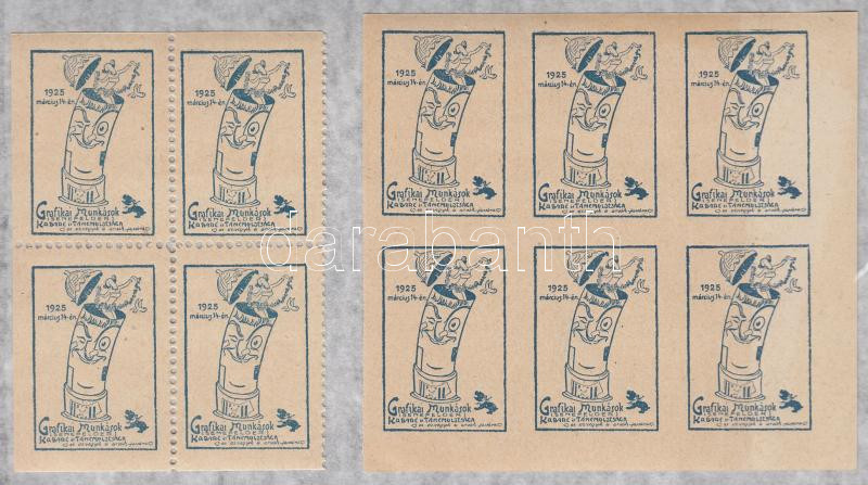 1925 Grafikai munkások táncmulatsága levélzáró fogazott négyestömb + v...