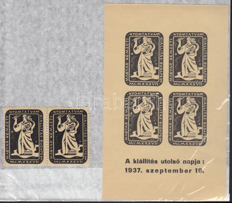 1937 Nyomtatványkiállítás levélzáró pár + fogazatlan emlékív