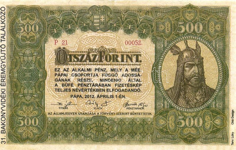 2012. Pápa "31. Bakonyvidéki Éremgyűjtő Találkozó" 500Ft pénzpótló utalvány T:I