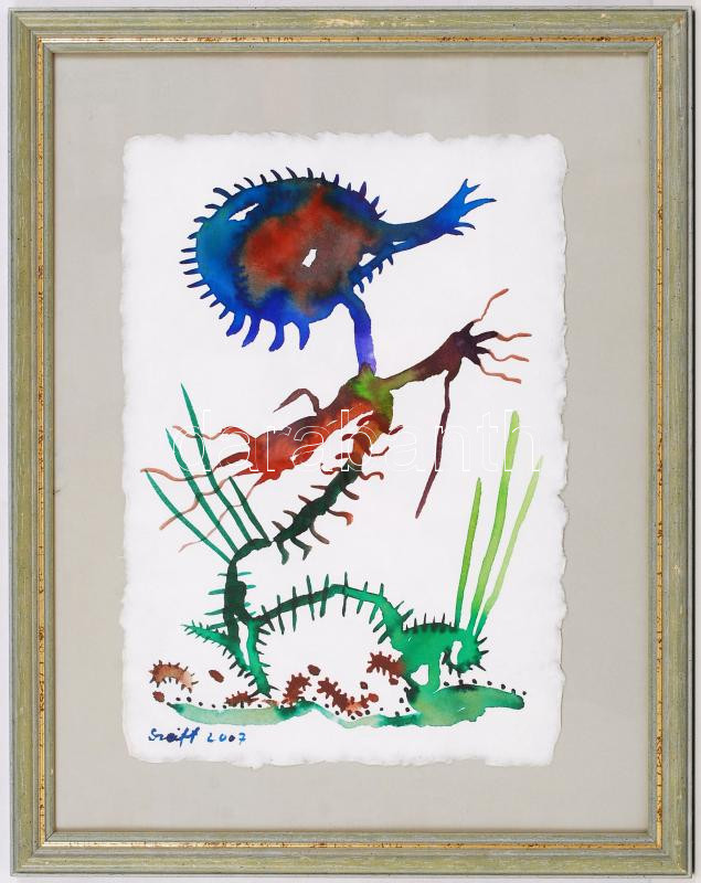 Szeift Béla (1944-): Kertben. Akvarell, merített papír, jelzett, üvege...