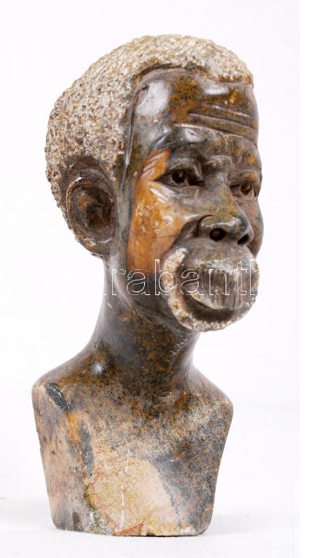 Gondosan megmunkált bennszülött büszt szürke gránitól, m: 15 cm