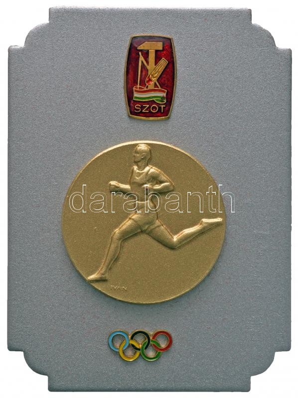 ~1970. "Szakszervezetek Országos Tanácsa" ezüst fokozatának kitüntetése (hátlap levált) szalaggal (karika törött), szalagsávon miniatűrrel dísztokban + "SZOT (Szakszervezetek Országos Tanácsa") fém sport plakett (95x70mm) T:1,3