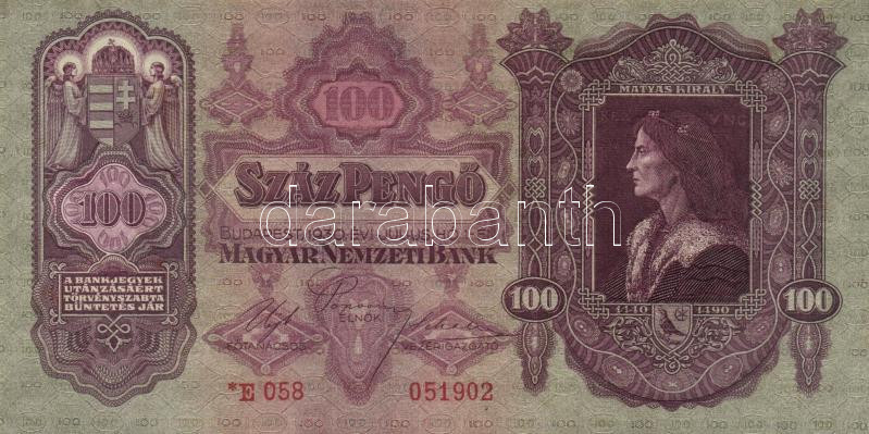 https://www.darabanth.com/en/202-Online-auction/202.0/Numismatics/Hungarian-Banknotes~600008/1930-100P-2x-egyik-E-plus-1945-100P-2x-egyiknel-BUNTETES-szoban-N-felett-lemezhiba-T~II802077