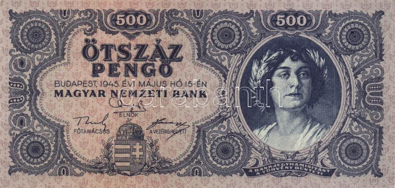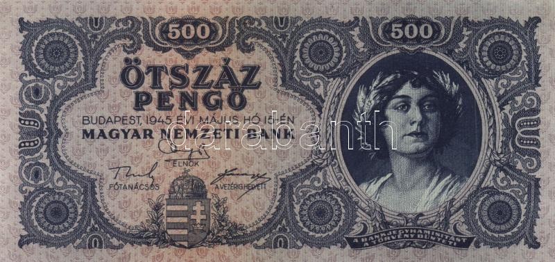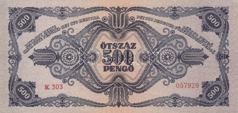 1945. 500P (2x), egyiken orosz "P" betű helyett magyar "...