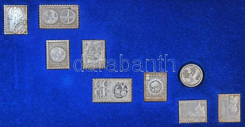 Hungary 1979. Complete collection of commemorative silver stamp medallions with 8 pieces of different medallions and one badge in original wooden-box! C:PP R!