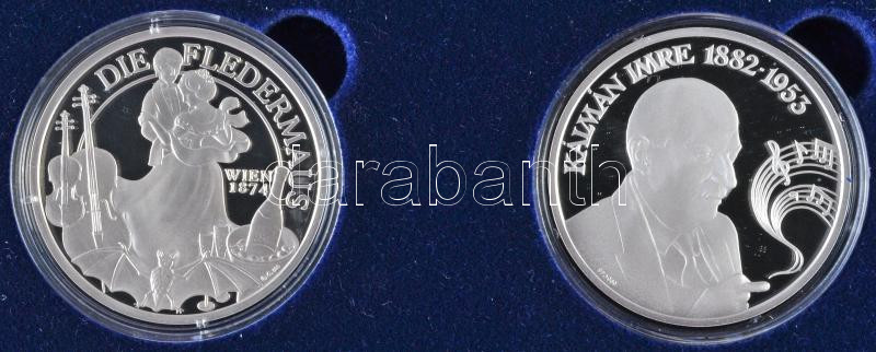 Austria-Hungary coin pair: 2008. "Imre Kálmán-Csárdásfürstin" and "Johann Strauss-Die Fledermaus" Ag(0.999) medallion (20g/40mm) in original box :PP with certificate