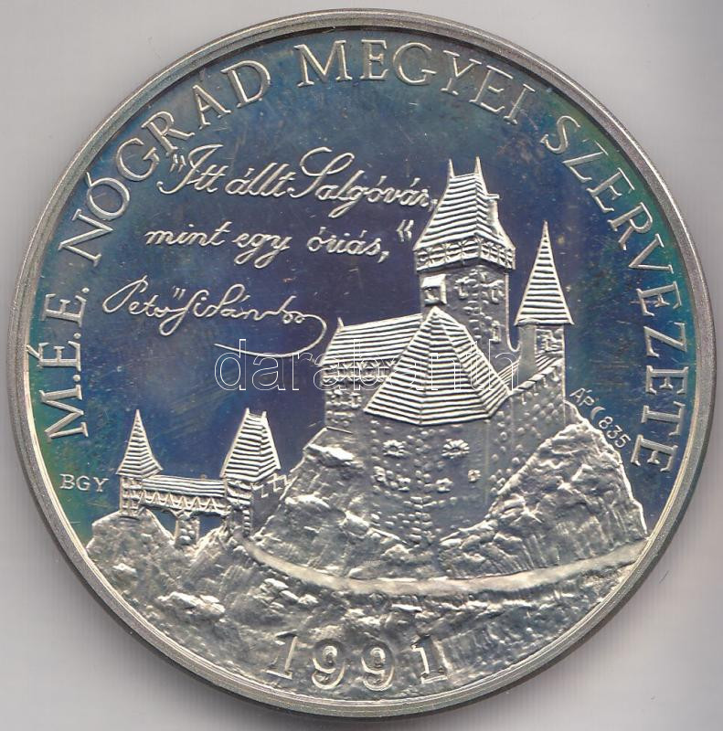 Bognár György (1944-) 1991. "MÉE Nógrád megyei szervezete - Salgó vára" Ag emlékérem (36.05g/0.835/42.5mm) T:PP Csak 200db!