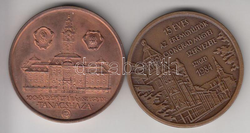 Description: Lapis András (1942-) 1984. "100 éve épült újjá a szegedi Tanácsháza" Br emlékérem + Fritz Mihály (1947-) 1984. "15 éves az Éremgyűjtők Csongrád Megyei Szervezete Szeged" T:2