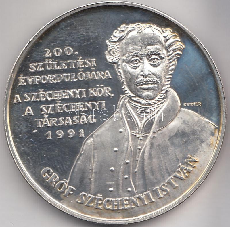 Renner Kálmán (1927-1994) / Szabó Géza (1939-) 1991. "Gróf Széchenyi István 200. születési évfordulójára" Ag emlékérem (37.73g/0.935/42.5mm) T:PP