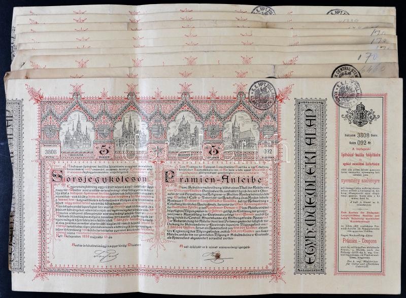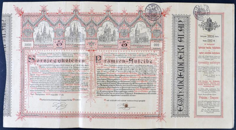 Description: Budapest 1886. "Egyházi Műemlék Alap Sorsjegykölcsöne 5Ft-ról a budapest-lipótvárosi bazilika kiépítésére s egyházi műemlékek fenntartására" osztrák pecséttel (9x) T:III