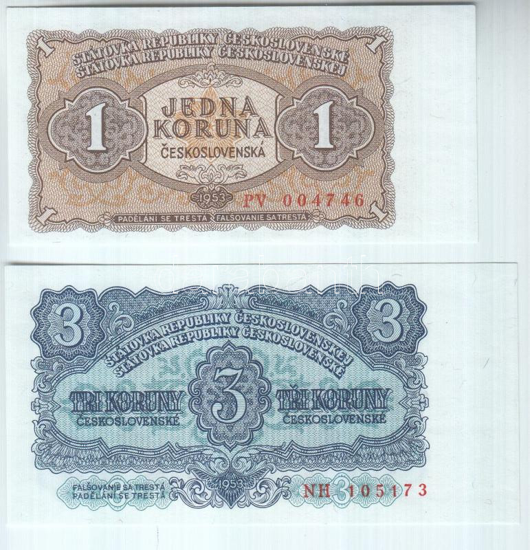 https://www.darabanth.com/en/202-Online-auction/202.0/Numismatics/Worldwide-banknotes~600012/Csehszlovakia-1953-1K-plus-3K-TI-3Cbr3ECzechoslovakia-1953-1-Korun-plus-3-Korun-CUNC-3Cbr3EKrause-78-79~II800498