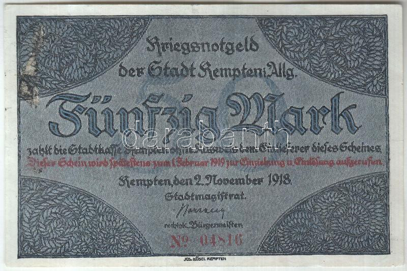 Német Birodalom/Weimari Köztársaság/Bajorország/Kempten 1918. 50M háborús szükségpénz T:II-,III fo.