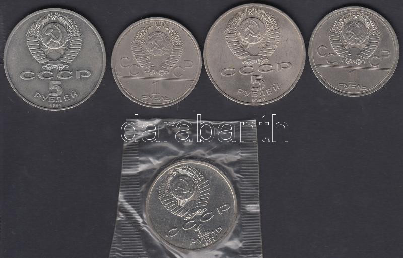 Soviet Union 1978-1991. 1 Ruble (3xdiff) + 5 Rubles (2xdiff) C:vegyes