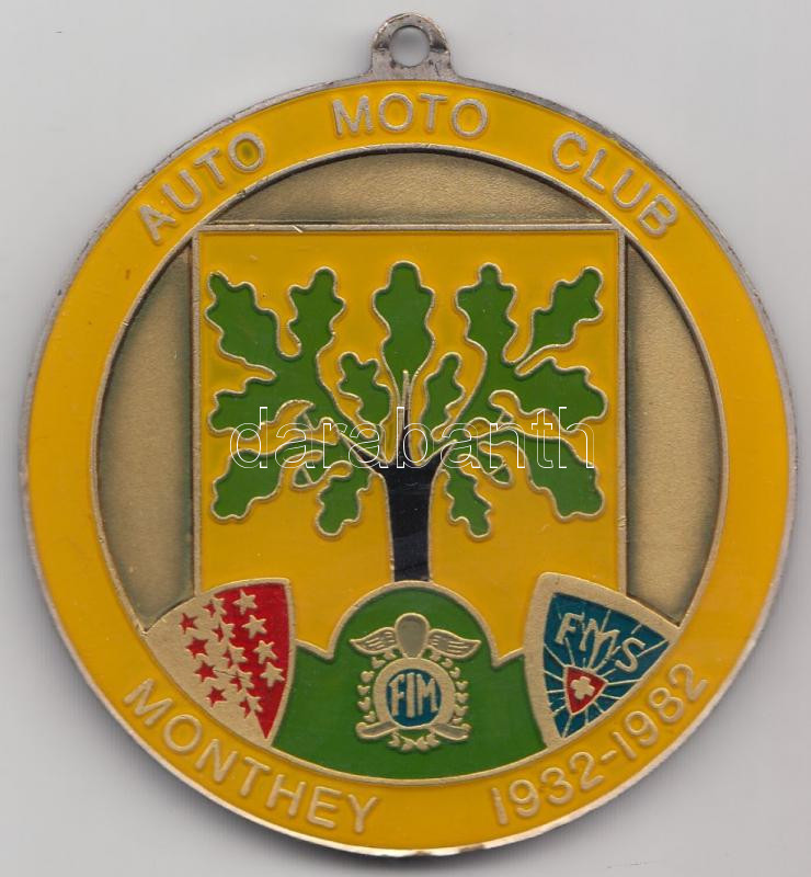 Switzerland 1982. "Auto Moto Club Monthey / Rallye Fim" enamelled/silvered Br medallion C:XF