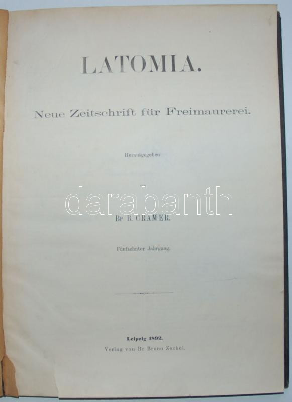 B. Cramer: Latomia - Neue Zeitschrift für Freimaurerei. 15. Jahrgang L... https://www.darabanth.com/en/202-Online-auction/202.0/Other-collectibles/Books-History~200009/B-Cramer-Latomia--Neue-Zeitschrift-fur-Freimaurerei-15-Jahrgang-Leipzig-1892-Bruno-Zechel-Sz~II536073
