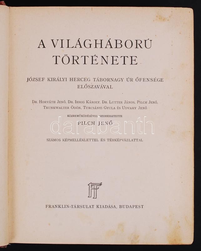Pilch Jenő: A világháború története. Szerk. - Számos képmelléklettel é... https://www.darabanth.com/en/202-Online-auction/202.0/Other-collectibles/Books-History~200009/Pilch-Jeno-A-vilaghaboru-tortenete-Szerk--Szamos-kepmelleklettel-es-terkepvazlattal~II766161