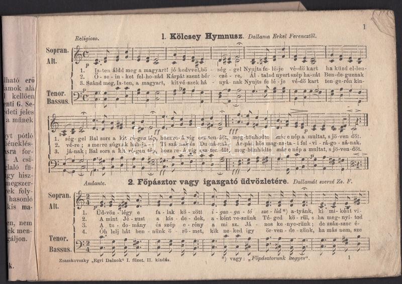 Zsasskovszky Ferencz és Endre: Egri dalnok I. füzet Válogatott komoly ...
