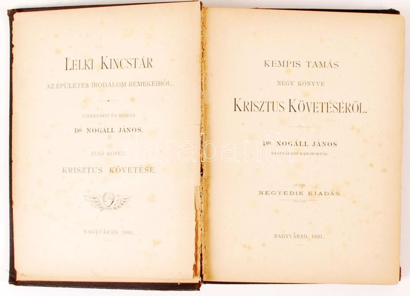 Kempis Tamás 4 könyve Krisztus követéséről. Dr. Nogáll János nagyvárad... https://www.darabanth.com/en/202-Online-auction/202.0/Other-collectibles/Books-Religion~200018/Kempis-Tamas-4-konyve-Krisztus-koveteserol-Dr-Nogall-Janos-nagyvaradi-kanonoktol-Negyed~II803471