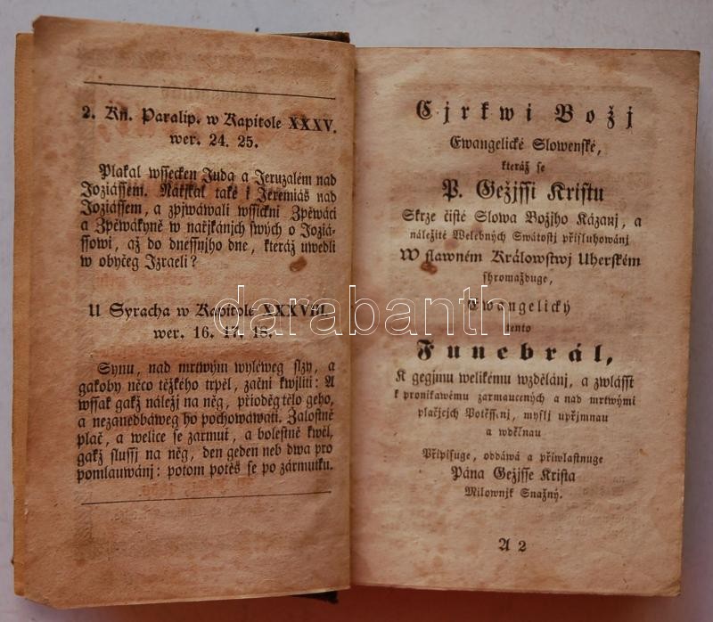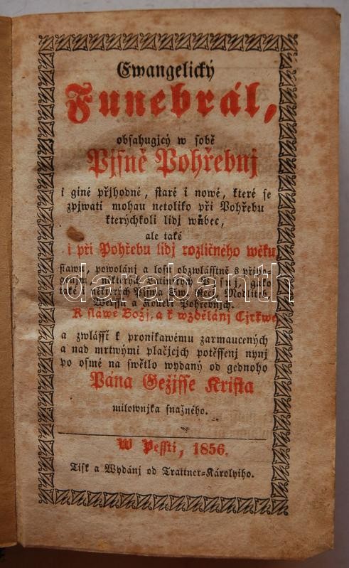 Slovakian religious book: Ewangelich funebral.... Pest 1856. Trattner-...
