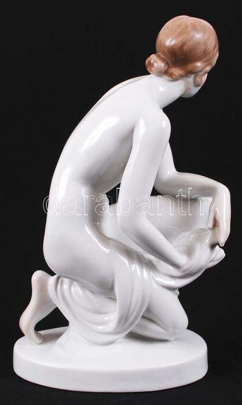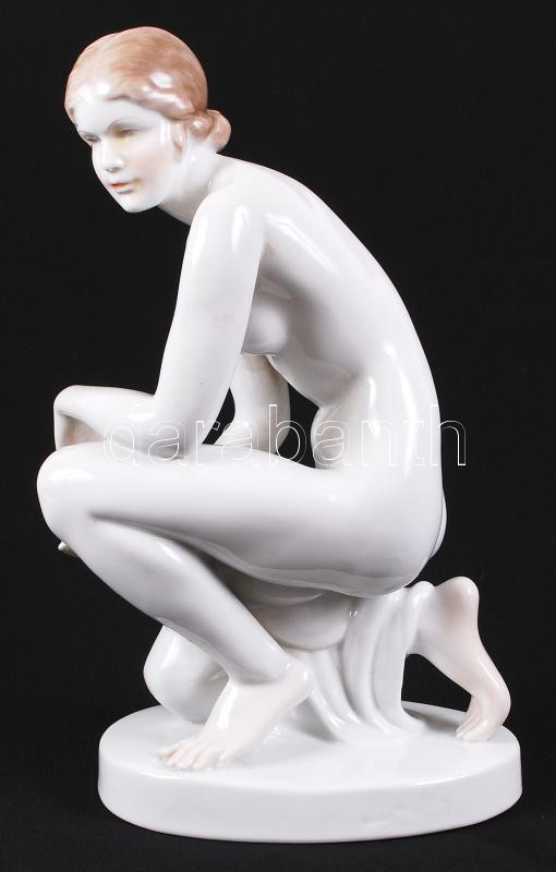 Herendi térdelő akt (Lux Elek), kézzel festett, jelzett (csak mélynyomás, festő), hibátlan, m:35 cm