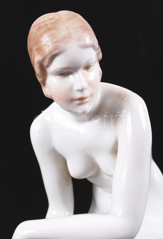 Herendi térdelő akt (Lux Elek), kézzel festett, jelzett (csak mélynyom...