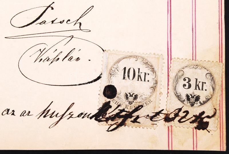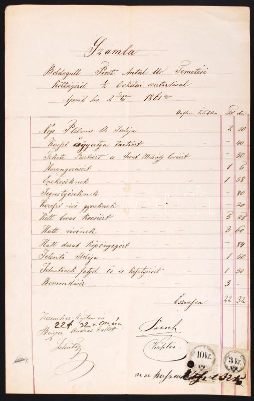 1861 Számla temetési költségekről illetékbélyegekkel.