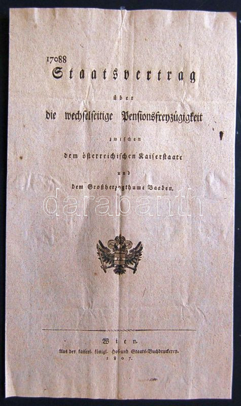 1807 Badeni hercegség és Ausztria között kötött szabad költözés jogáról szóló szerződés szövege / The text of the treaty between the Austrian and Baden emperor about the free movement 6p