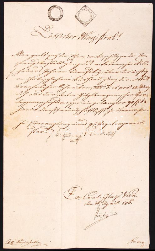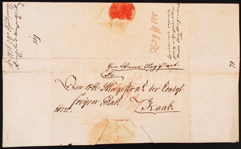 1816 Győr városi tanácsnak szóló okirat levélként feladva, kontrollszignettával.