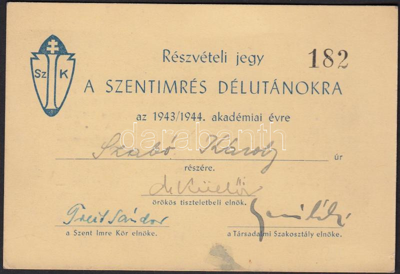 1943/1944 Részvételi jegy a Szentimrés délutánokra