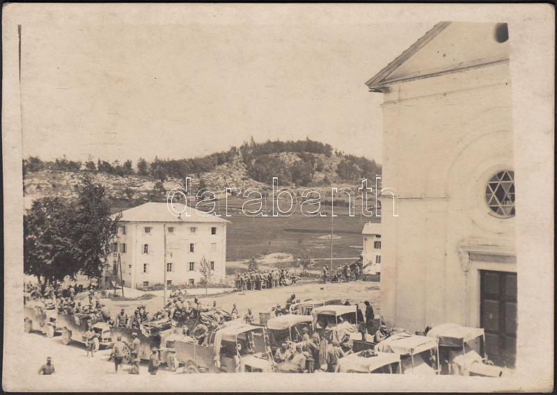 1916 Tirol, Állomásozó olasz katonákkal gépkocsikkal a háttérben zsina... https://www.darabanth.com/en/202-Online-auction/202.0/Other-collectibles/Judaica~200001/1916-Tirol-Allomasozo-olasz-katonakkal-gepkocsikkal-a-hatterben-zsinagogaval-hatoldalan~II801015