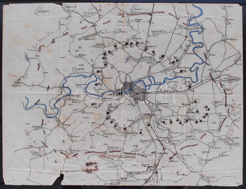 1916 Przemysl és környéke a frontvonalakkal és a szemben álló csapatok... https://www.darabanth.com/en/202-Online-auction/202.0/Other-collectibles/Military~200004/1916-Przemysl-es-kornyeke-a-frontvonalakkal-es-a-szemben-allo-csapatok-helyzetevel-Kezzel-r~II624538