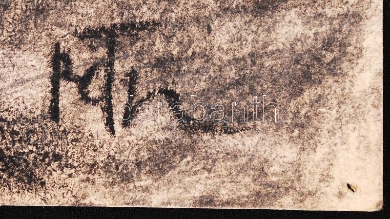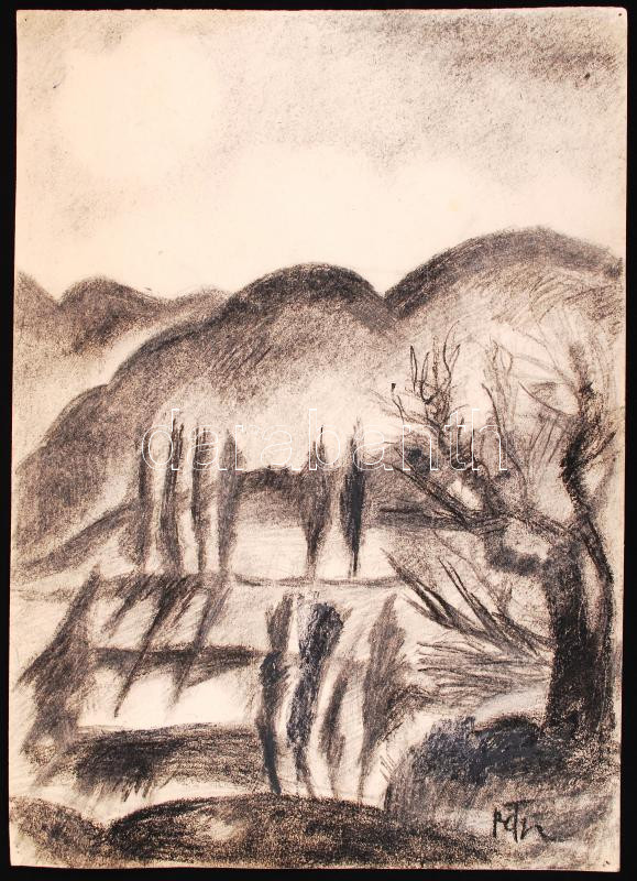 Réti jelzéssel: Kilátás a dobról. Szén, papír, 42×29 cm