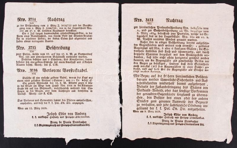 1839 Wien (Bécs), Német nyelvű körözési leírások.