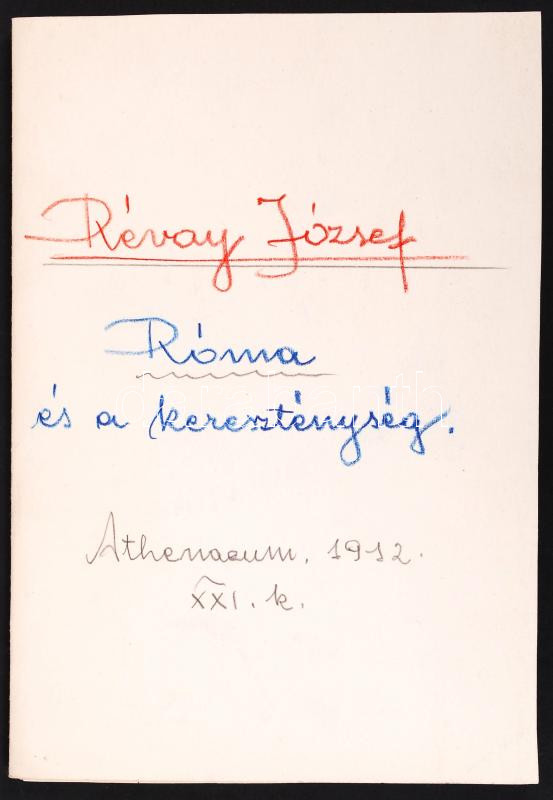 https://www.darabanth.com/en/202-Online-auction/202.0/Other-collectibles/Printed-Materials~200007/1912-Revay-Jozsef-Roma-es-a-keresztenyseg-Reeszlet-az-Atheaneum-1912-XXI-szamabol~II781790