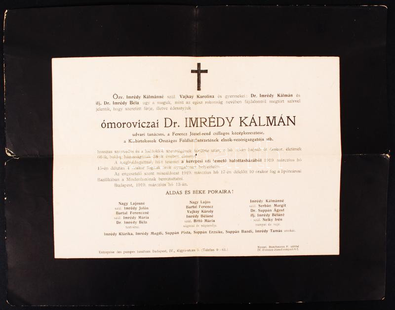 https://www.darabanth.com/en/202-Online-auction/202.0/Other-collectibles/Printed-Materials~200007/1919-omoraviczai-Imredy-Kalman-a-Ferenc-Jozsef-rend-tulajdonosa-halotti-ertesitoje~II752768