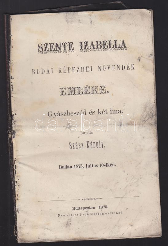 https://www.darabanth.com/en/202-Online-auction/202.0/Other-collectibles/Printed-Materials~200007/Szente-Izabella-budai-kepezdei-novendek-emlekere-gyaszbeszed-es-ket-ima-Tartotta-Szasz-KC3~II523758