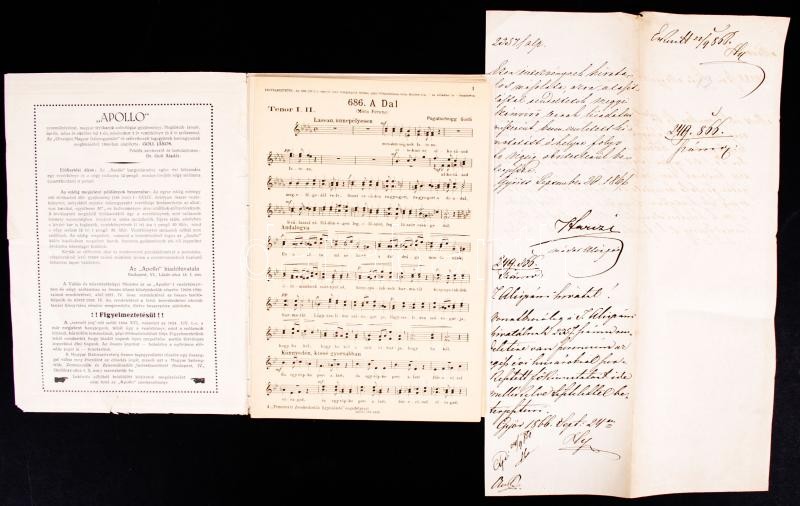 cca 1860-1932 Vegyes nyomtatványok, iratok (Apollo zenemű-folyóirat, k...