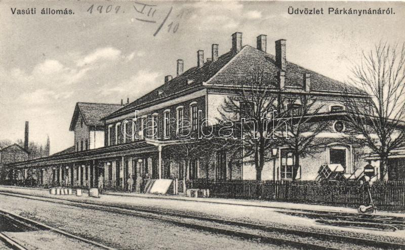 Párkánynána, Vasútállomás; Özv. Neumann Gézáné kiadása / railway stati...