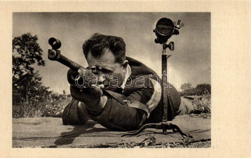 Kisöbű sportpuska, fekvő testhelyzet, 50 méter 40 lövés; Képzőművészeti Alap Kiadóvállalata / Small-bore sport rifle, modern postcard