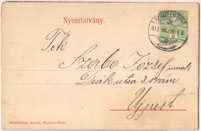 Herkulesfürdő, Mihalovitzky Arnold kiadása; panoramacard (cut)