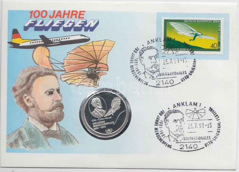 Description: Németország 1991. "100 éves a repülés" ezüstözött emlékérem bélyeges borítékon, elsőnapi bélyegzéssel T:PP